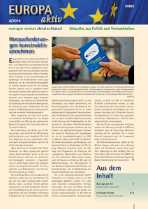 In der aktuellen Ausgabe von Europa aktiv erwarten Sie Rückblicke auf den gemeinsamen Bundesausschuss von Europa-Union und Jungen Europäischen Föderalisten, auf die Rede von Jean-Claude Juncker zur Lage der Union und das Föderalismus-Seminar auf der italienischen Insel Ventotene. Lesen Sie außerdem den Nachruf auf EUD-Ehrenpräsident Walter Scheel und weitere Beiträge aus dem Verband. Auch die neue Kampagne „Europa – wir halten zusammen“ stellen wir Ihnen vor. Wie immer gibt auch es viele Neuigkeiten aus den Landes- und Kreisverbänden.…
